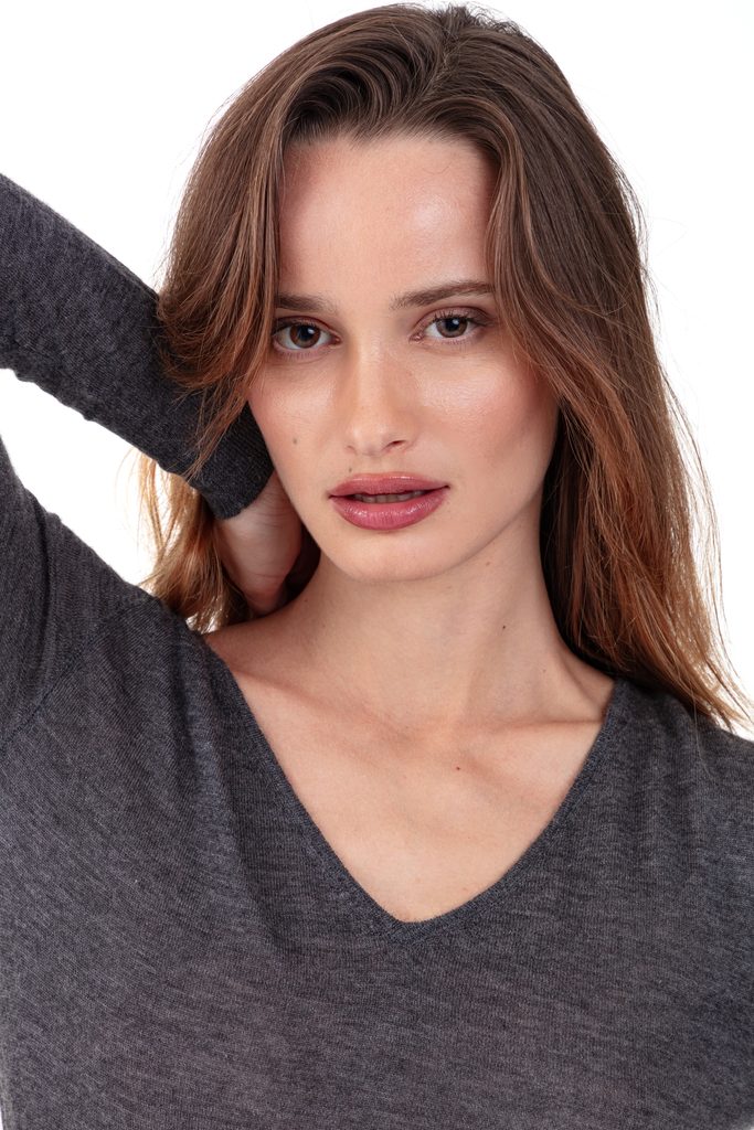 This V-neck jumper in cashmere down slips just as easily under a tailored jacket as it does worn alone for a minimalist, chic look. A precious piece to adopt for its unique softness and lightness.