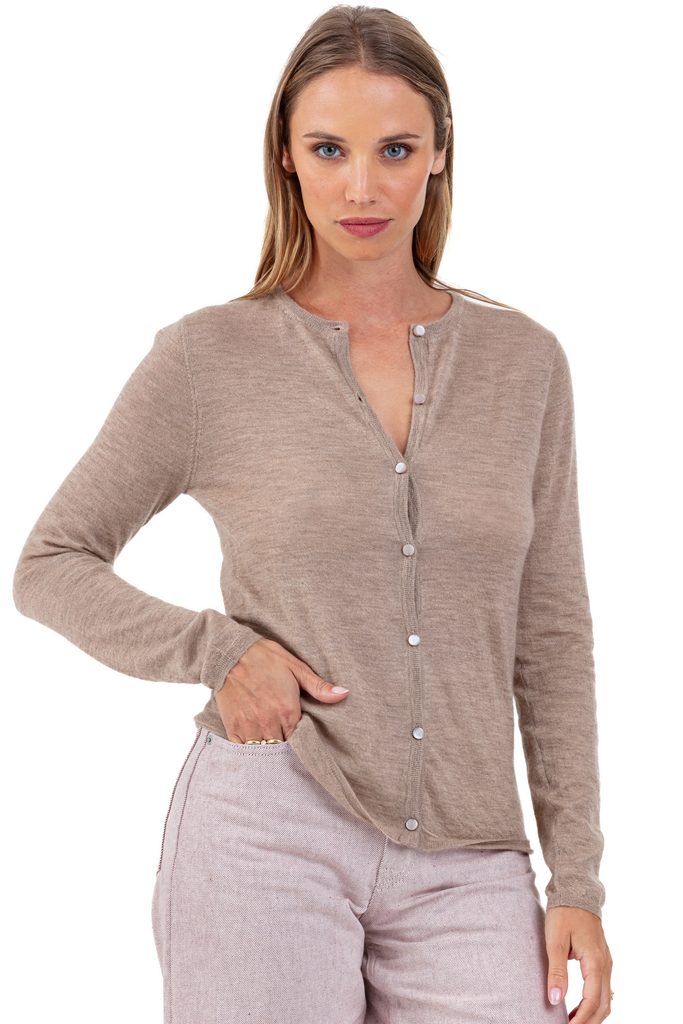 Delicate and timeless, the PISE cashmere down cardigan enchants with its finesse and incomparable comfort. Crafted in 100% cashmere down, it adopts the elegant cut of the Chloé model. With its round neck, long sleeves, and ultra-fine knit, it feels like a true second skin.