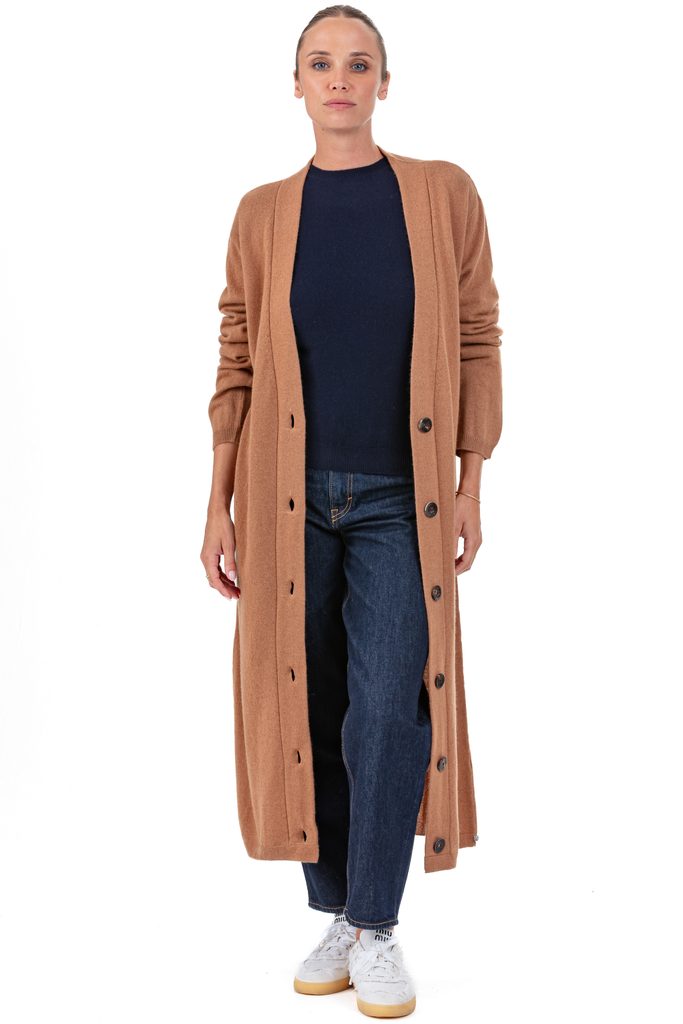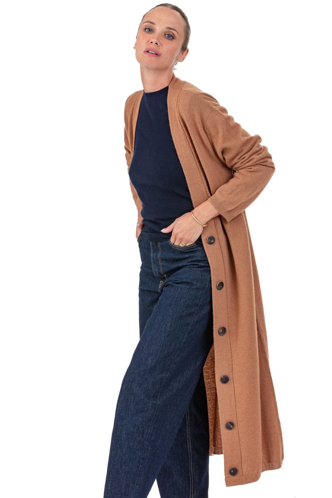 - Style: Extra-long buttoned cardigan