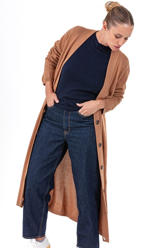 With its generous length and classic design, the RIMINI cardigan is a standout piece in any wardrobe. Knitted in 100% cashmere 2-ply, gauge 12, it features a loose, straight fit, a deep V-neck and an elegant style that flatters all body shapes.