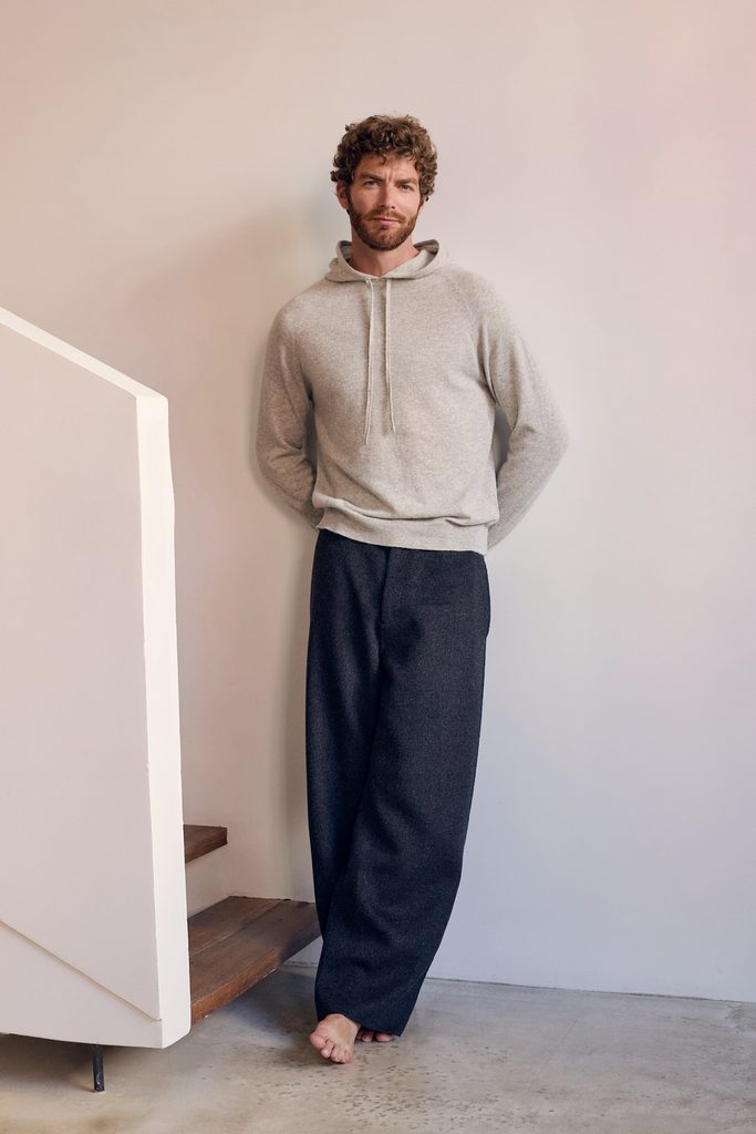 This men’s cashmere hoody can be worn with jeans and sneakers for a chic, relaxed look, or under a blazer for a sophisticated urban style.